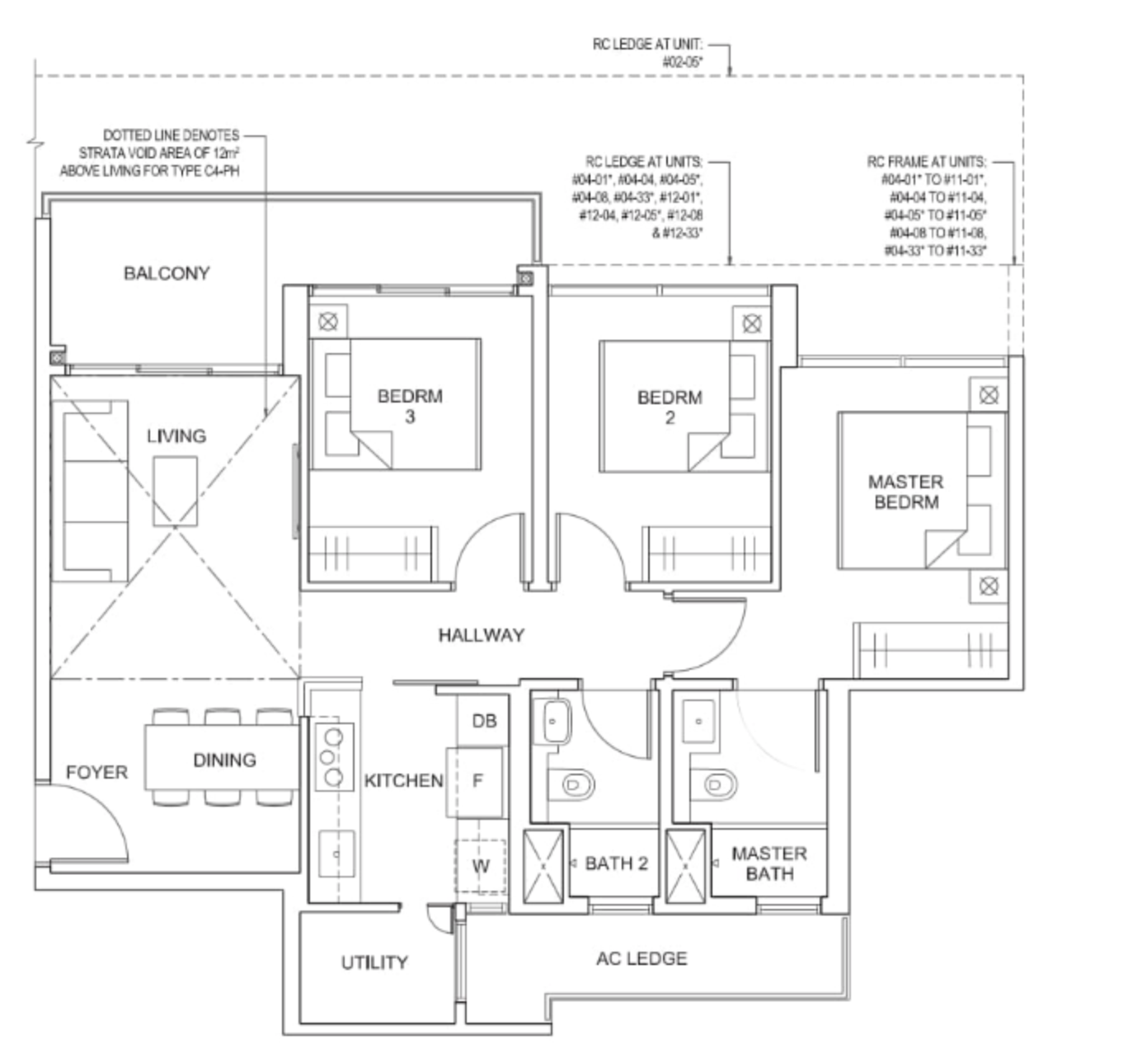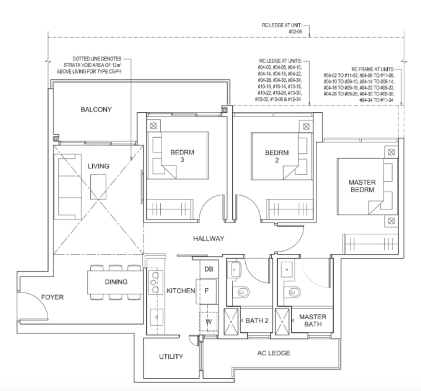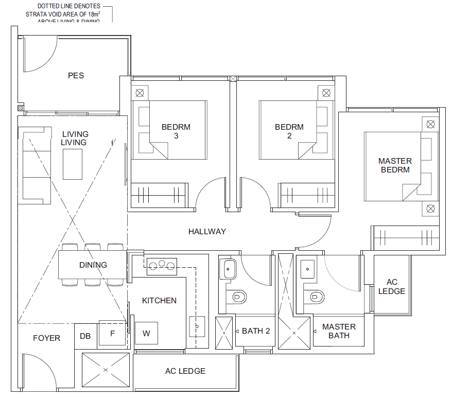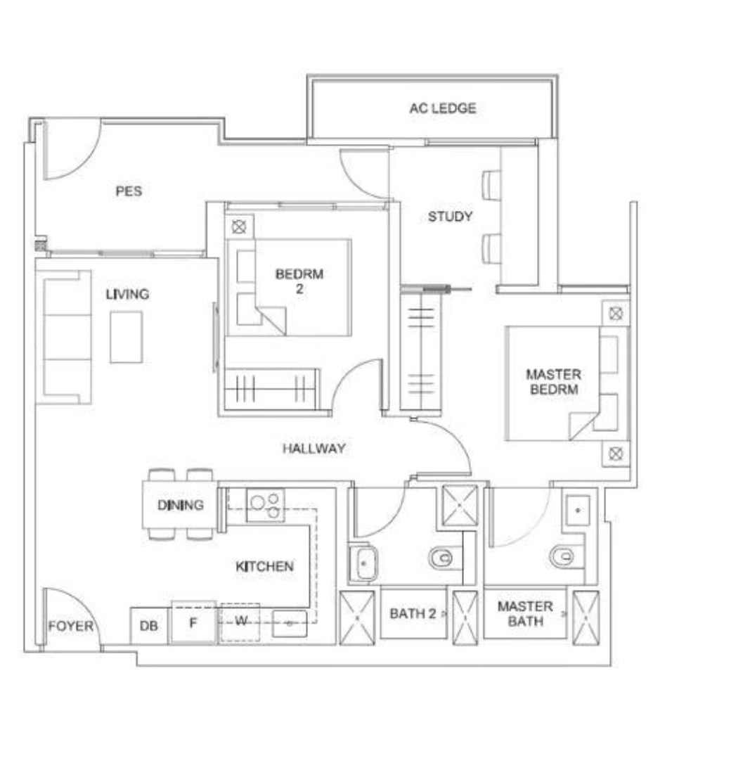 | 2 Bedroom + Study | 829 | 1 |